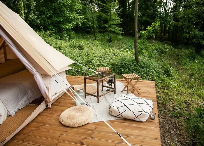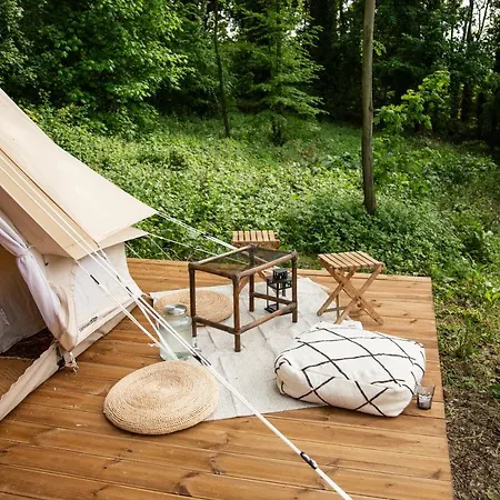 Luksusowy namiot obejmuje czajnik elektryczny i szklane naczynia, a także urządzenie do parzenia kawy/herbaty do samodzielnego przygotowywania posiłków. Goście mogą również korzystać z miejsca do jedzenia do samodzielnego przygotowywania posiłków. Willa znajduje się w odległości minutowej jazdy samochodem od przystanku Sclayn Vilette.